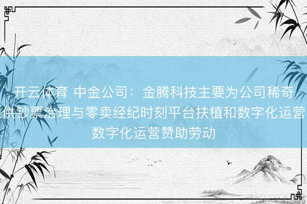开云体育 中金公司:金腾科技主要为公司稀奇子公司提供钞票治理与零卖经纪时刻平台扶植和数字化运营赞助劳动