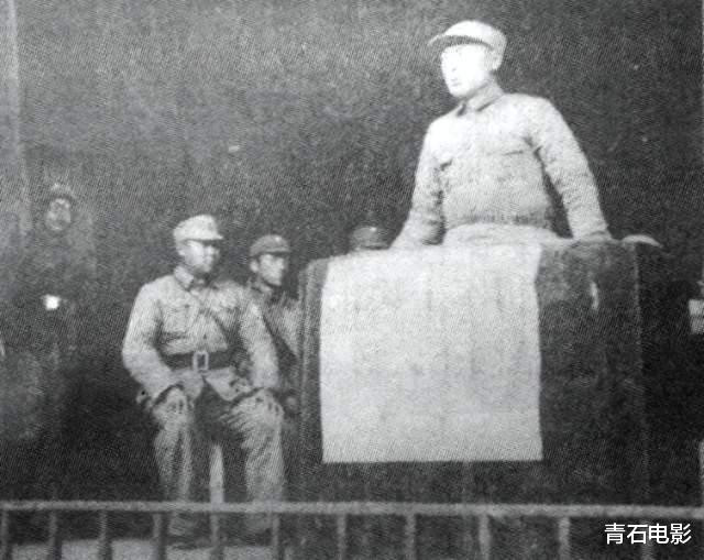 底下这张像片是郭勋祺应激走访新四军并作念敷陈,在讲台上的是陈毅,坐着的是郭勋祺。