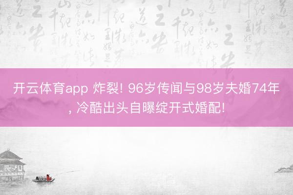 开云体育app 炸裂! 96岁传闻与98岁夫婚74年, 冷酷出头自曝绽开式婚配!