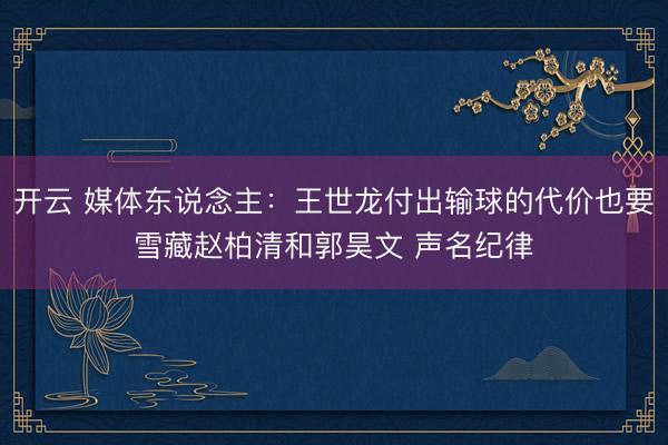 开云 媒体东说念主:王世龙付出输球的代价也要雪藏赵柏清和郭昊文 声名纪律