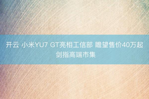 开云 小米YU7 GT亮相工信部 瞻望售价40万起 剑指高端市集