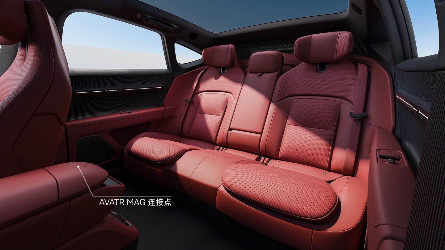 {jz:field.toptypename/}新车标的盘弃取方形造型蓄意,诞生有小塔一键语音按键和 Boost 一键加快,后排扶手箱处还配有 AVATR MAG 连络点。
