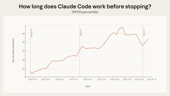 2026年2月18日,Anthropic发布了一份对于AI智能体现实使用情况的大鸿沟谈论论述(论述:https://anthropic.com/research/measuring-agent-autonomy),分析对象是其宇宙API上数百万次真的的东谈主机交互。