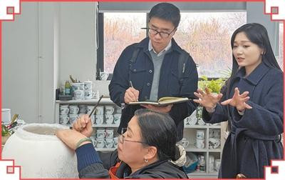 本报湖南分社记者杨迅(后左)在采访陶瓷制作。