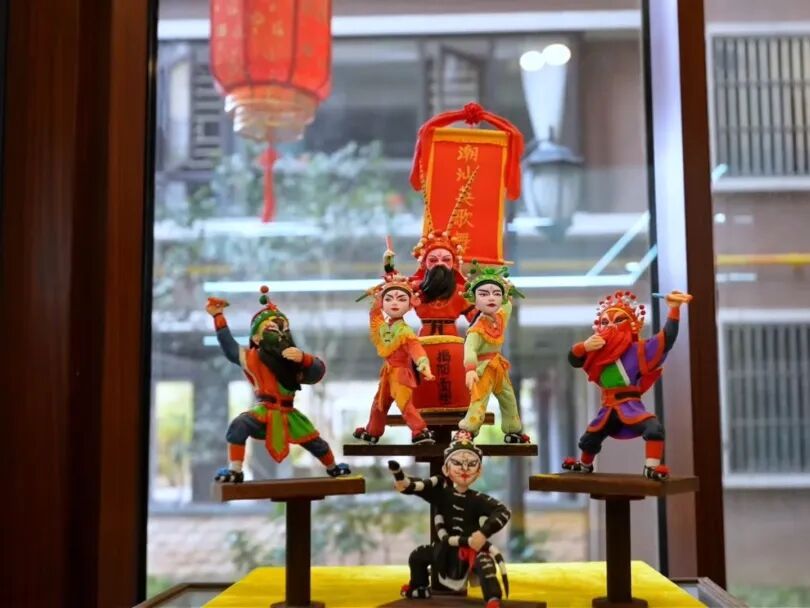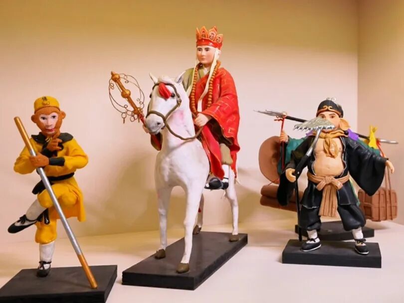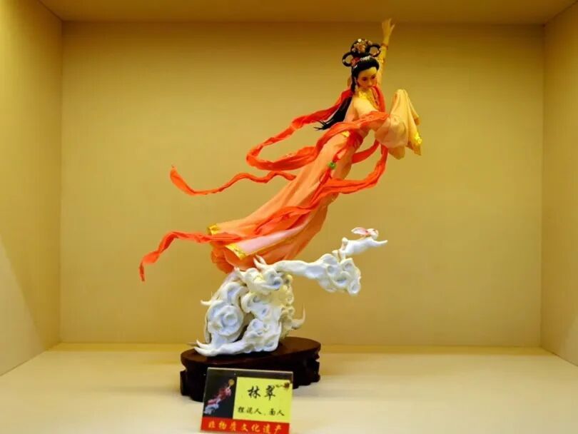 借助这波网罗热度将面塑老本事带上潮水新舞台的同期,她不忘联动其它文化实验,责任室内的面塑作品不仅展示了敦煌飞天、英歌舞、摆猪羊等传统文化,还再现西纪行、潮剧京城会、只此青绿等影视场景。