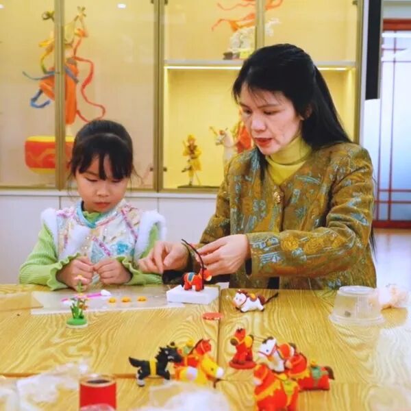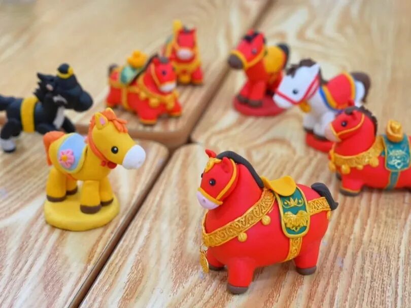 见到林翠时,她的责任室里正开展着一堂天真真义的面塑课,林翠和责任室的老诚们致密提示着小一又友们揉面、塑形,用面团握制小马。手掌一揉一压、手指一捻一放,一匹匹可儿萌态的小马就被制作出来。随着新春的脚步日益左近,林翠也入辖下手创作马年主题的面塑作品,一刀一握,齐饱含着浓浓的新春祝贺。