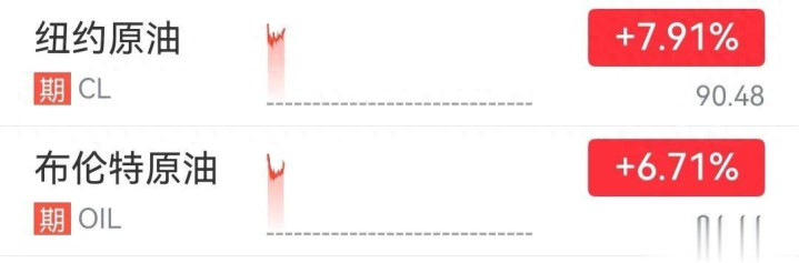 完满发稿,WTI原油涨7.91%,布伦特原油期货涨6.71%。现货黄金跌1.28%,现货白银跌2.08%。