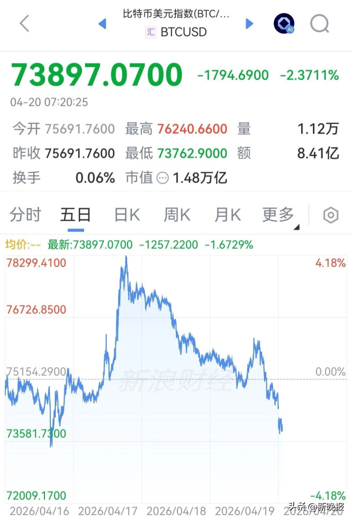 加密货币方面,开云体育下载主要币种集体下挫,比特币跌至7.4万好意思元近邻,日内跌幅超2%。畴前24小时,全市集超16万东谈主爆仓,爆仓总和超4亿好意思元。