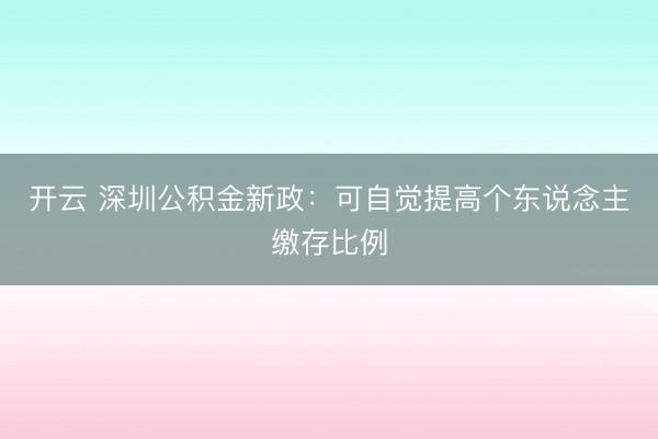 开云 深圳公积金新政:可自觉提高个东说念主缴存比例