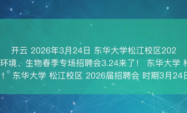 开云 2026年3月24日 东华大学松江校区2026届纺织、材料、化工、环境、生物春季专场招聘会3.24来了! 东华大学 松江校区 2026届招聘会 时期3月24日13:30