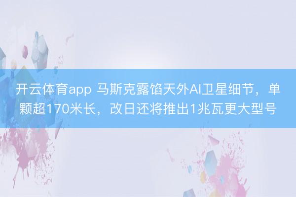 开云体育app 马斯克露馅天外AI卫星细节,单颗超170米长,改日还将推出1兆瓦更大型号