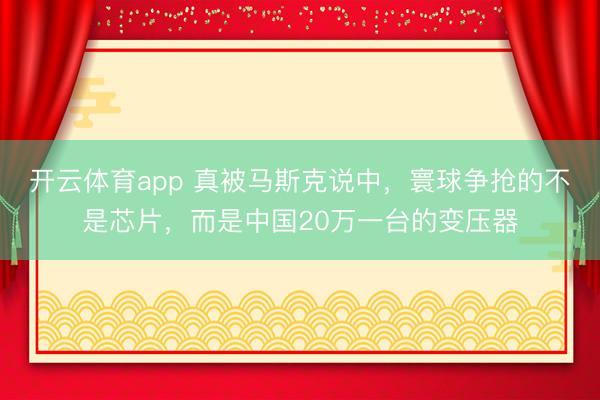 开云体育app 真被马斯克说中,寰球争抢的不是芯片,而是中国20万一台的变压器