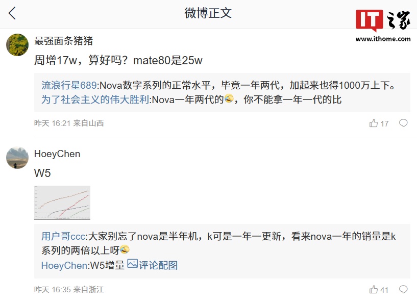 评述区有网友进行谋略,nova 15 系列手机周增约 17 万台(一年两代),而 Mate 80 系列手机周增约 25 万台(一年一代)。