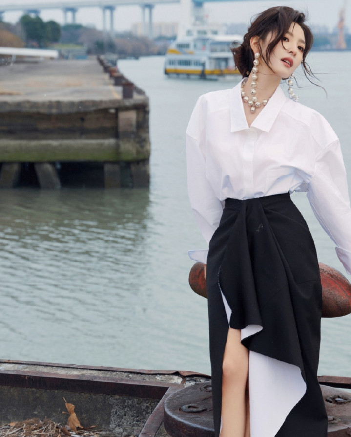 章若楠站在海风里,你说打动你的是白衬衫,也曾发梢的隐衷?
