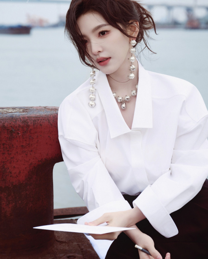 开云 章若楠站在海风里, 你说打动你的是白衬衫, 也曾发梢的隐衷?