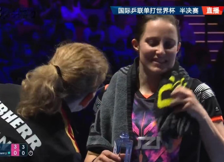 在回顾比赛之后,温特输掉了这一局比赛,随后的第4局吗,孙颖莎再一次11:5拿下,大比分4:0完成了横扫。在输球之后,温特袒露了自若的笑颜,她依旧是笑貌盈盈。