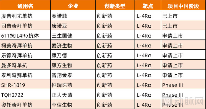 针对IL-4Rα靶点,国内药企正在积极激动干系家具的买卖化。这些家具通过性价比、互异化的合乎症和优化给药频率等方式张开全所在竞争。