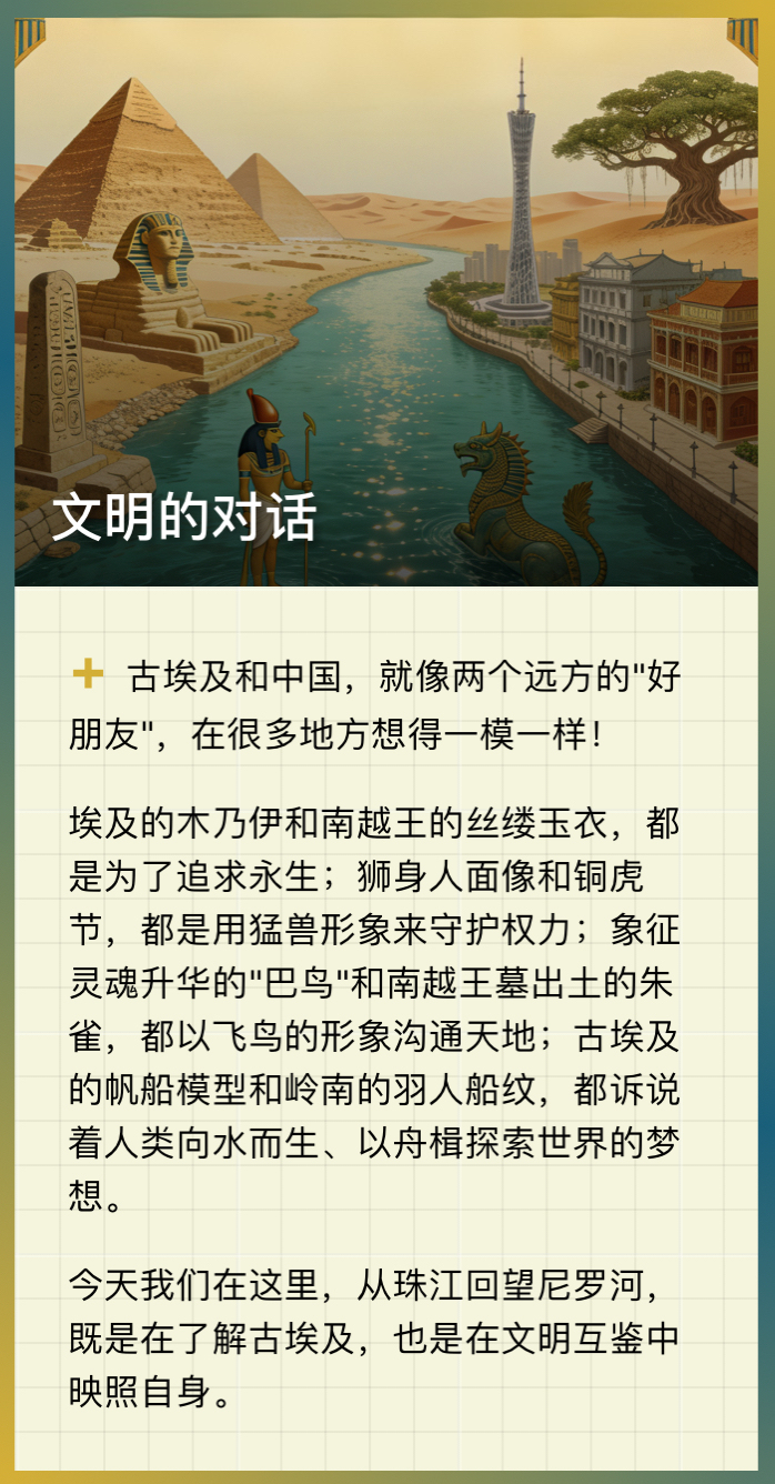 今天我们站在这里,从珠江回望尼罗河,既是注意志古埃及,亦然在文雅对话中更好地意志我们我方!