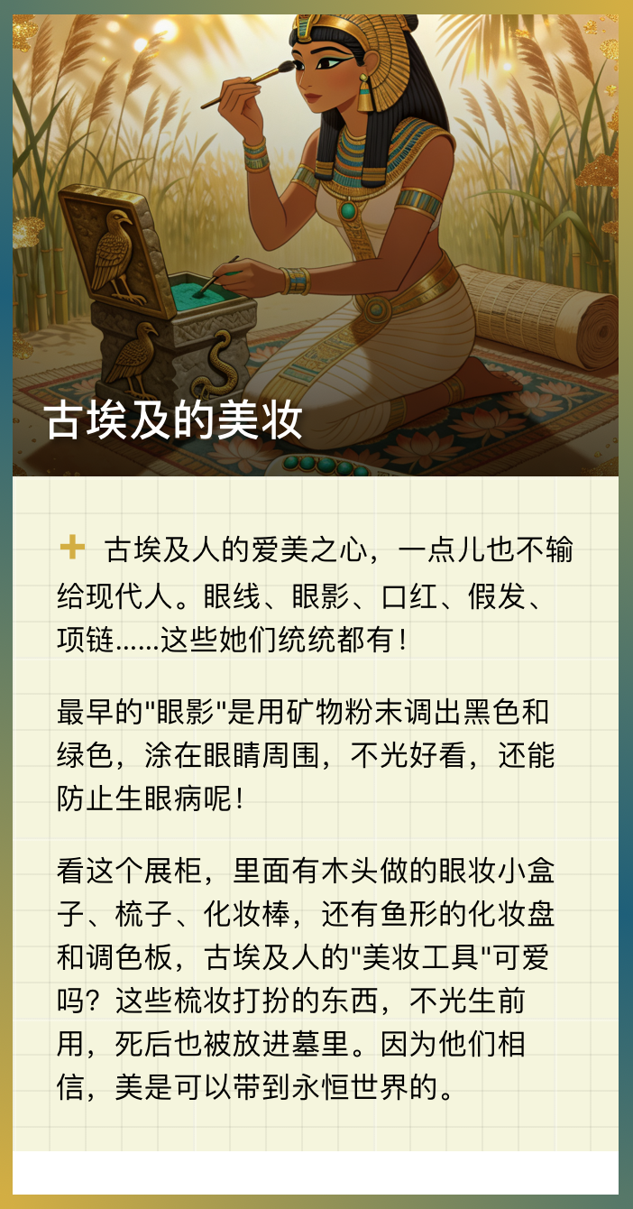 好啦,我的教练界限啦!你们认为,古埃及东说念主的化妆台,跟姆妈的比,谁更历害呀?
