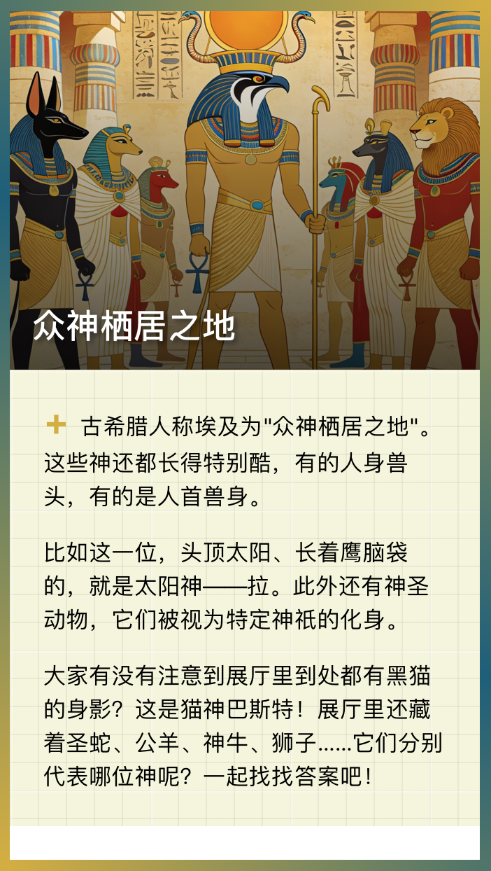 展厅里还藏着圣蛇、公羊、神牛、狮子……它们分袂代表哪位神呢?这个就当是给大家的小任务啦,等会儿参不雅的期间不错我方找找看!我的教炼就到这里,谢谢大家!