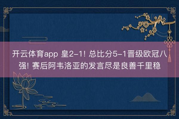 开云体育app 皇2-1! 总比分5-1晋级欧冠八强! 赛后阿韦洛亚的发言尽是良善千里稳