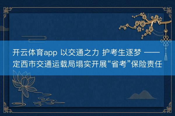 开云体育app 以交通之力 护考生逐梦 —— 定西市交通运载局塌实开展“省考”保险责任
