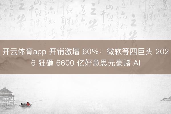 开云体育app 开销激增 60%:微软等四巨头 2026 狂砸 6600 亿好意思元豪赌 AI