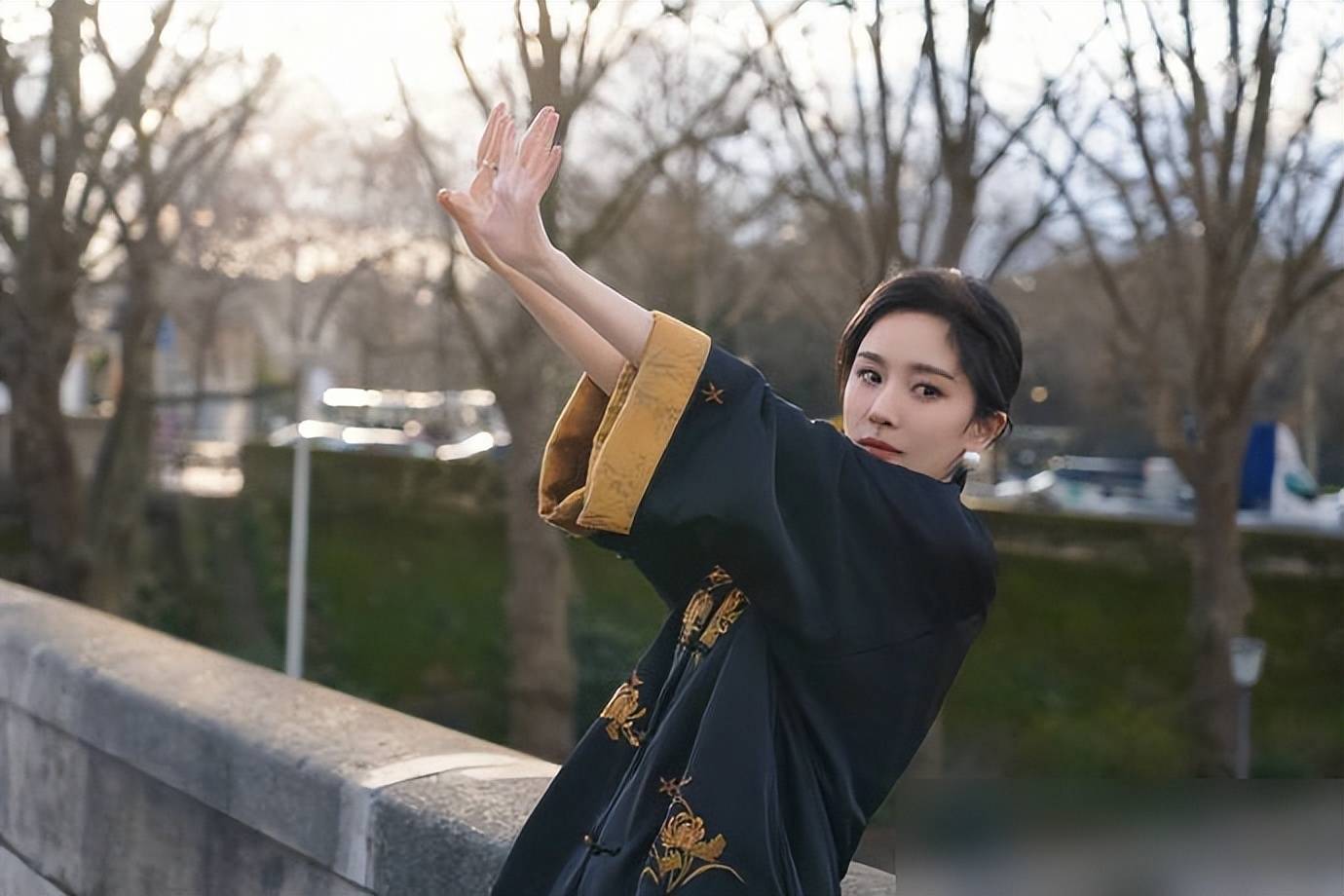 时装周总给东说念主一种“不穿得像外星来的就输了”的嗅觉,满屏的亮片、廓形、荧光色,看深切像吃多了芝士蛋糕,有点腻。直到看到杨幂穿那件新登科外衣,短暂像在甜品店喝到了一杯温温的桂花酿,甜得刚好,香得入心。玄色的料子垂坠感强,不是那种硬邦邦的唐装面料,像把丝绸揉成了哑光,盘扣是琥珀色的牛角扣,扣起来的时代能摸到纹路,金色刺绣不是大片铺的,是顺着衣摆绣了几枝梅,针脚细得像睫毛,远望是如坐云雾的金,近看才发现每一派花瓣齐有档次——这种贵气不是贴满logo的“炸”,是刻在布料里的“雅”,像老茶楼里挂的墨宝,越看越有滋味。你有莫得过这种嗅觉?看惯了泰西风的“张扬”,短暂际遇一件带东方细节的穿着,像际遇了老一又友,练习又惊喜。