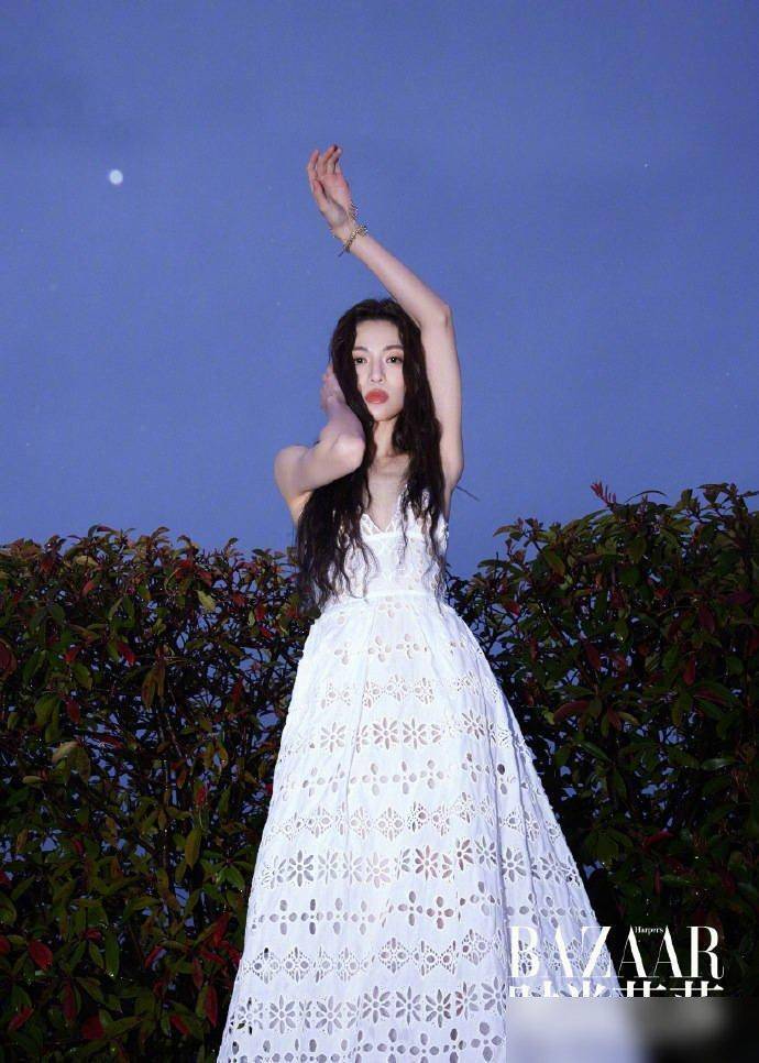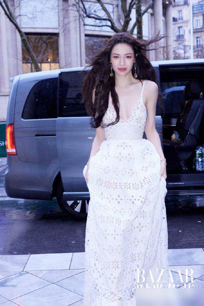 钟楚曦的白色镂空吊带裙更绝,明明是吊带裙,却穿得像刚从蟾光里走出来的东说念主。