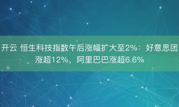 开云 恒生科技指数午后涨幅扩大至2%:好意思团涨超12%,阿里巴巴涨超6.6%