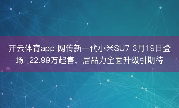 开云体育app 网传新一代小米SU7 3月19日登场! 22.99万起售,居品力全面升级引期待