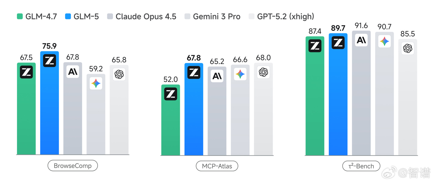 在 BrowseComp(联网检索与信息融会)、MCP-Atlas(器具调用和多才略任求现实)和 τ²-Bench(复杂多器具场景下的计较和现实)、Vending Bench 2(模拟接头才调)均取得开源最好证据。