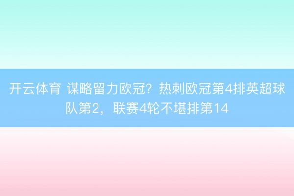 开云体育 谋略留力欧冠?热刺欧冠第4排英超球队第2,联赛4轮不堪排第14