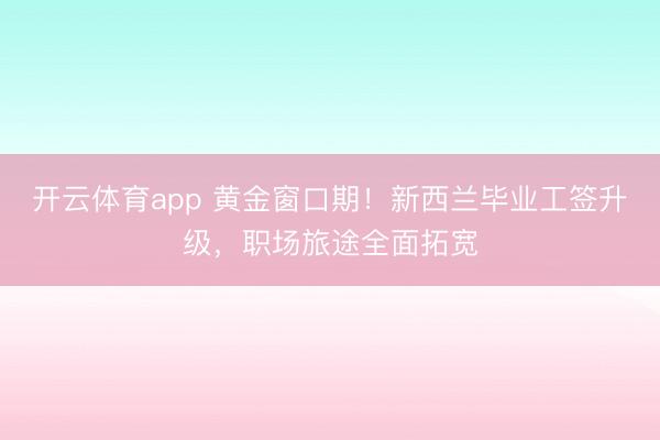 开云体育app 黄金窗口期!新西兰毕业工签升级,职场旅途全面拓宽