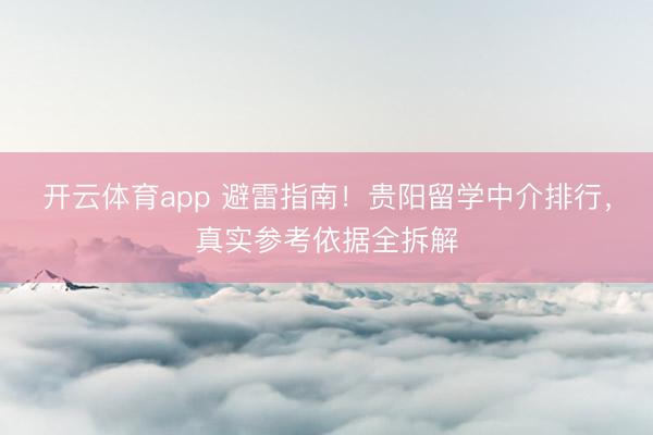 开云体育app 避雷指南!贵阳留学中介排行,真实参考依据全拆解