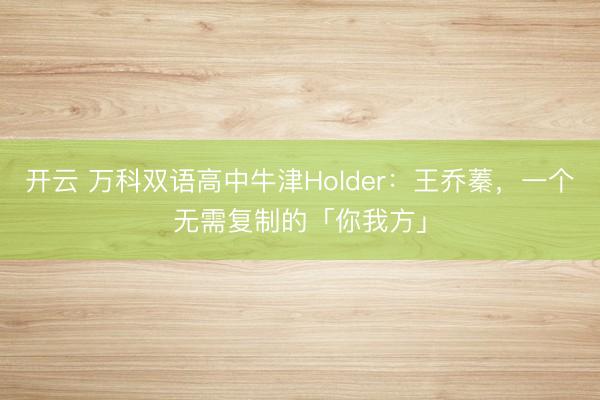 开云 万科双语高中牛津Holder:王乔蓁,一个无需复制的「你我方」