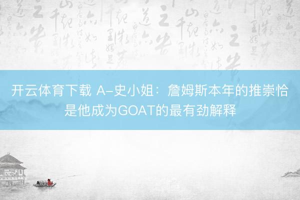 开云体育下载 A-史小姐:詹姆斯本年的推崇恰是他成为GOAT的最有劲解释